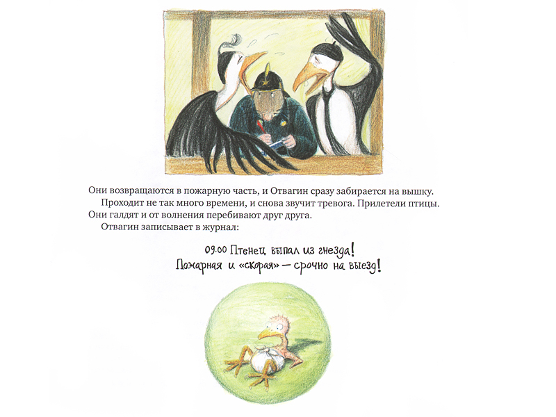 Брандмайор ни на секунду не отрывается от подзорной трубы, озирая окрестности. А когда обнаруживает что-то из ряда вон выходящее, первым делом фиксирует происшествие в журнале. Например: «07.00. Кротам нужна помощь! Выслать пожарную машину и “скорую”».