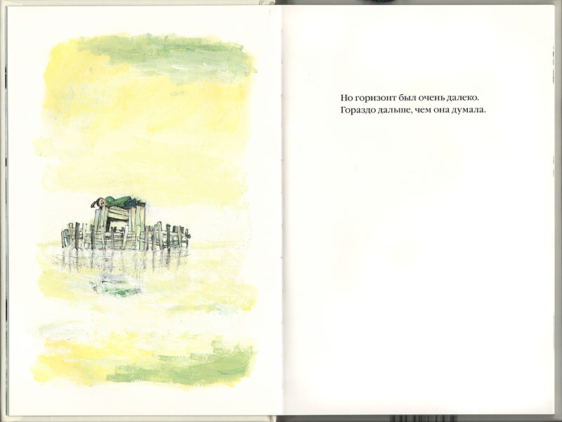 …Эта история придумана и нарисована голландской художницей Марит Торнквист. Но некоторые страницы, прозрачность красок, обобщенность и образность текста напомнили мне японское искусство: соединение живописной картинки и коротких поэтических строк. Этот сплав изображения и слова производит очень сильное впечатление.