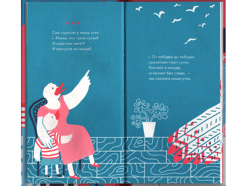 В ритм текстов Марины Вишневецкой прекрасно вплетаются иллюстрации Любы Березиной. То есть мы не только видим картинку, но и чувствуем в ней движение в в такт чтению. И разнообразие в графическом расположении стихотворений – тоже очень удачный ход.