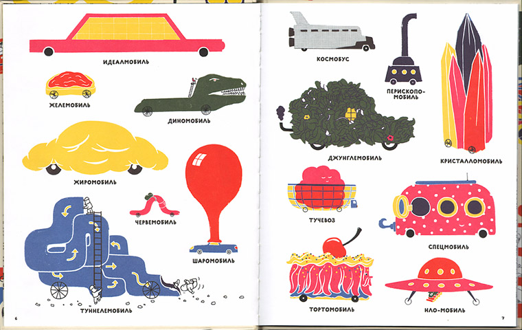 И какое же «содержание» предлагает нам шведский график? Абсолютно постмодернистское отношение к «энциклопедичности». В книге «АВТО», сообщает нам аннотация, вы найдете все возможные виды автомобилей – даже те, которых НЕ существует. На каждой странице нарисованы автомобили, а под ними – названия. Картинки с «этикетками». С «АВИА» та же история.