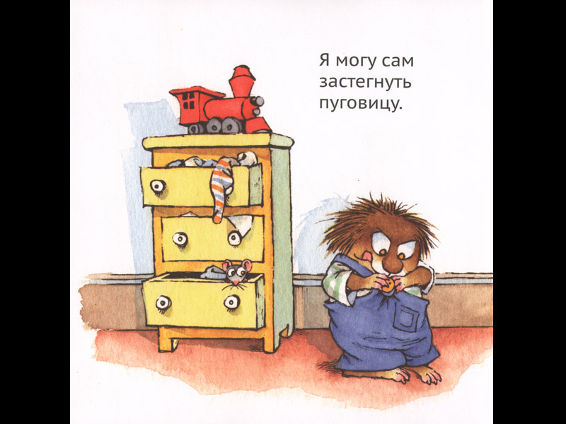 Книжка под названием «Я все могу сам» должна понравиться детям двух с половиной – трех лет. А вообще вся серия Мерсер Майер прекрасно подходит для раннего периода самостоятельного чтения. (Серия так и называется: «Ура! Я умею читать!».)
