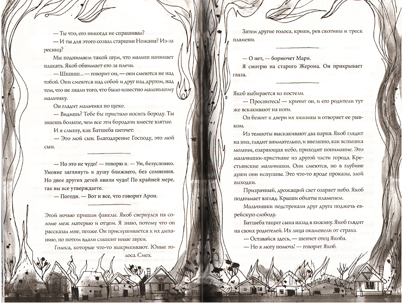 К счастью, Вильям, Якоб и Жанна оказались совсем не похожи на тех твердолобых взрослых, которые их окружали. Они сумели преодолеть стереотипы, которые жили в головах тогдашних людей, и с радостью помогали друг другу. Для них не существовало ни религиозных, ни национальных перегородок. Они просто жили и радовались, хотя все время находились в отчаянном положении. Не так-то просто жить, когда за тобой охотится сам король. Но при этом они смогли найти в себе силы спасти не только древние книги, но и своих преследователей, когда тем грозила смертельная опасность. Получается, что дети в этой истории проявили себя более мудрыми и милосердными, чем окружавшие их взрослые.