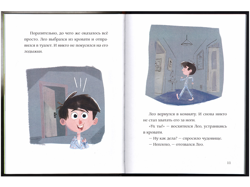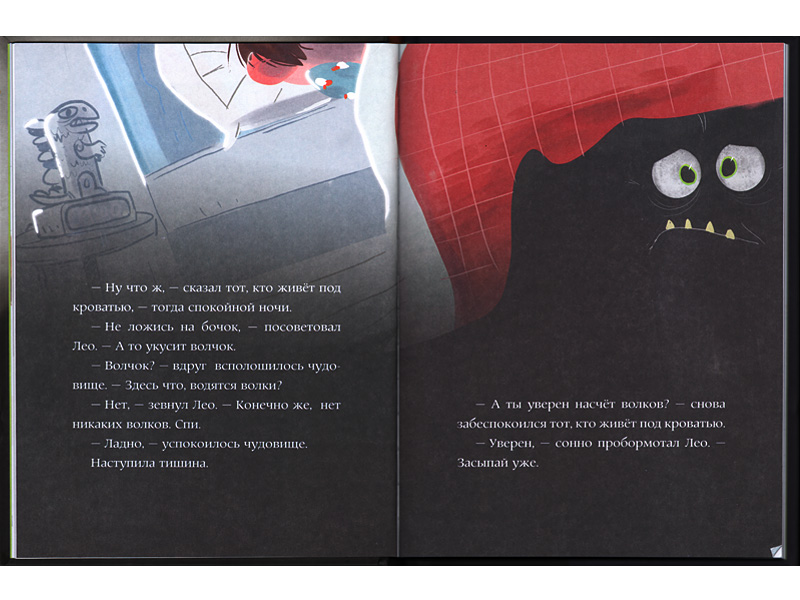 Сереже тоже не страшно, он хохочет, когда чудовище воет и рычит, и заливается звонким смехом, когда кровать Лео ходит ходуном. Еще больше Сережу удивляет то, что Лео решает дать чудовищу имя – Фред. Лео и Фред по очереди пугают друг друга. Для чудовища это работа, а для Лео – шалость. Сережа тоже любит шалить, и поэтому я читаю низким голосом: «Придет серенький волчок и укусит за бочок». Мы вместе смеемся.