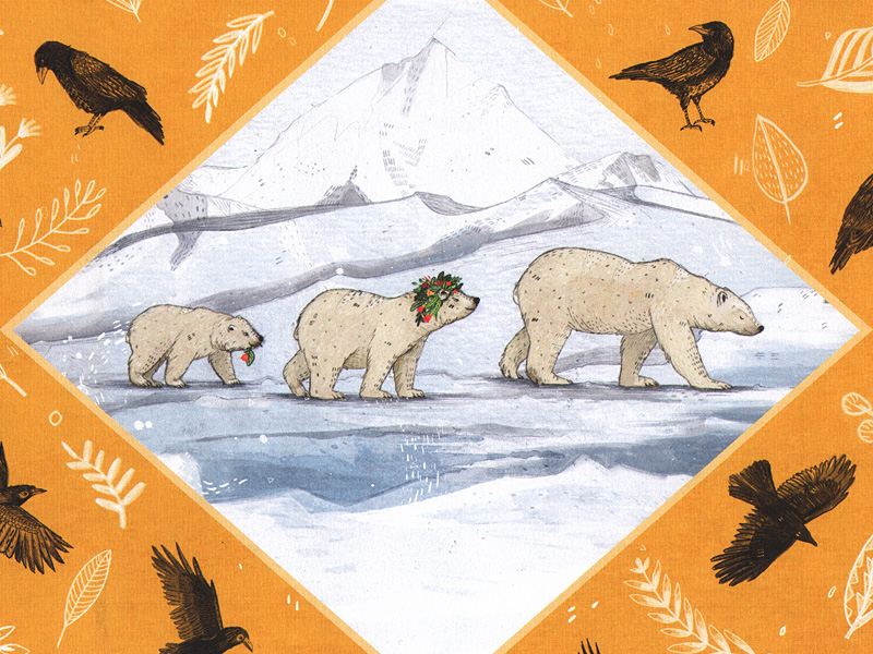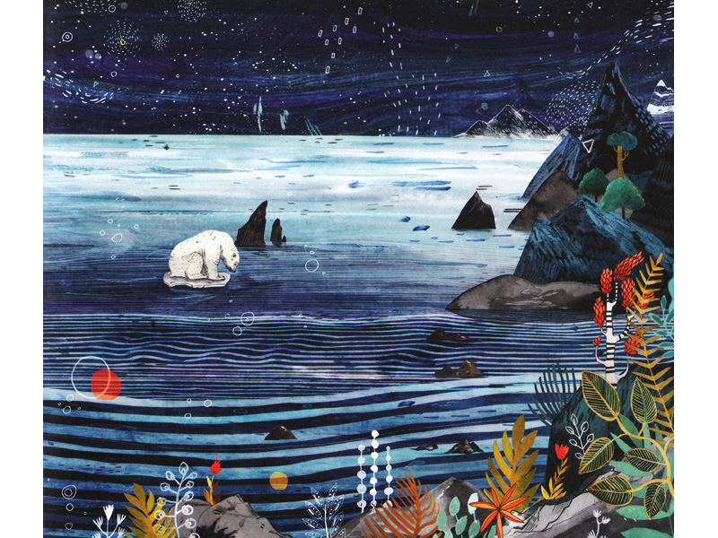 Но в этой книге не менее чудесны и выполненные самим автором иллюстрации. Обложка приглашает отправиться в путешествие в загадочный мир дикого леса, где причудливые листья деревьев отбрасывают ажурные тени, где внутри чашечек удивительных цветов блестит роса, а из лесной чащи прямо на читателя смотрит белый медведь с пронзительными глазами даосского старца. Сандре Дикманн удается передать таинственность и волшебство дикого леса, глубину моря и веселье ледяной пустыни. Иллюстрации выполнены как бы на границе сна и реальности: контуры предметов чуть-чуть изменены, но все же легко узнаваемы, чуть более яркие краски, ‒ ведь рассказанная автором история, безусловно, прекрасная сказка, но в эту сказку хоть раз в жизни попадает каждый из нас.