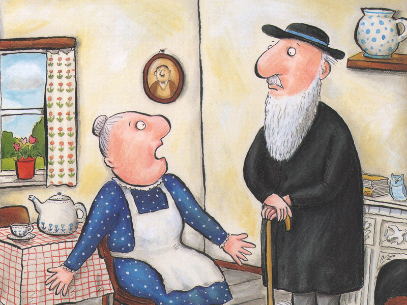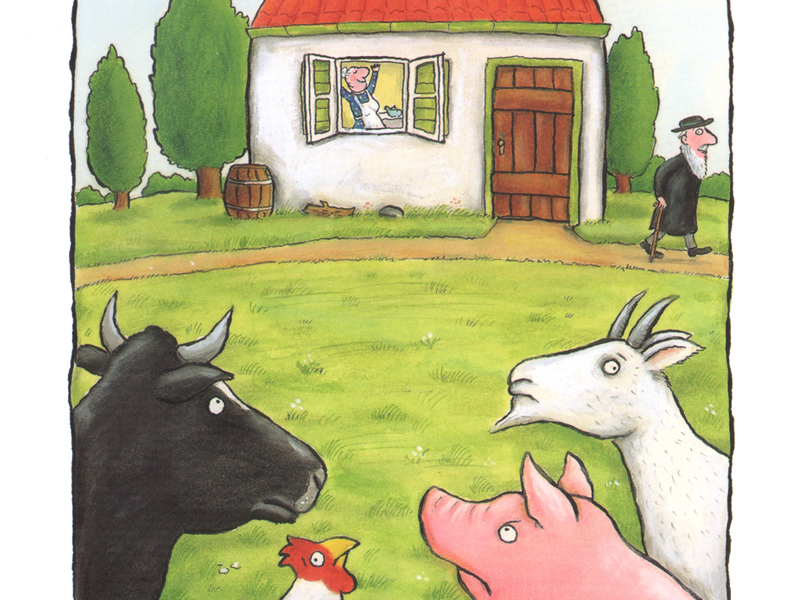 Сначала это был старый-престарый анекдот про раввина и козу. Потом он превратился в песенку, спетую под гитару в телевизионной программе. Песенка обернулась книжкой с чудными иллюстрациями. Много лет спустя эту книжку перевели на русский язык. Такая длинная история.