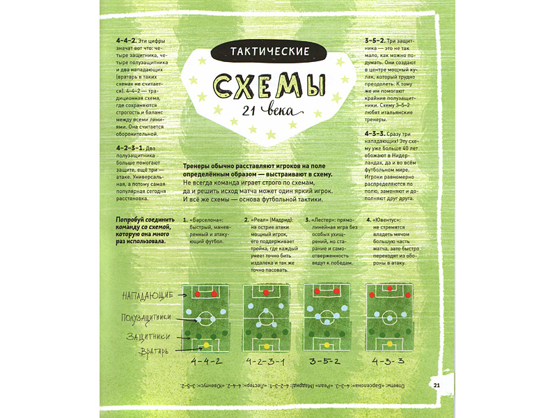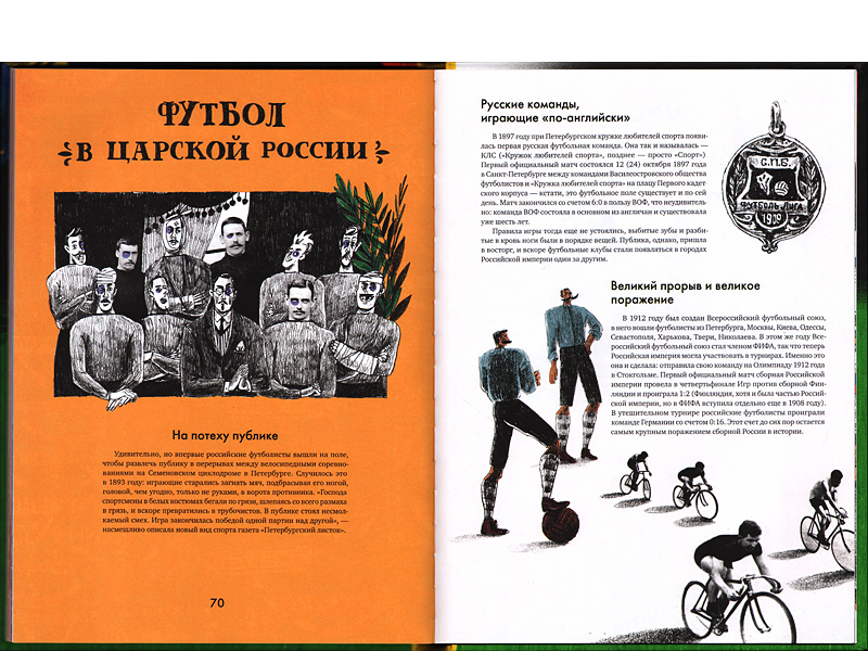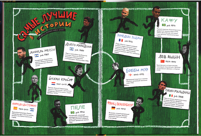 Я не читала детям эти книги вслух. Они вцепились в них сами, и младшему, Вадюше, не мешало даже то, что он не умеет читать. Он подолгу разглядывал книги, а один раз даже уснул, положив руку на разворот светло-зеленой футбольной книги.