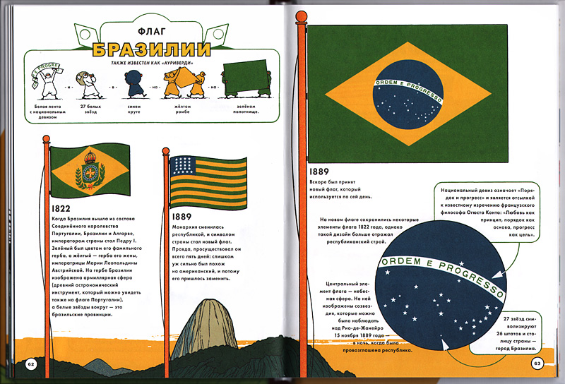 Вадюша нехотя отрывался от футбольной книги, долго смотрел, говорил «Ага» и листал свою книгу дальше. А то и вместе с Никитой искал в книге знакомый флаг. Иногда (когда борщ был сварен) я тоже разглядывала книги. «Все флаги что-то значат» – очень приятная, медитативная книга, и флаги в ней как живые. Потому что полосы, звезды и все другие символы к флагам несут разноцветные люди (их даже человечками сложно назвать), и оттого флаги кажутся еще более осязаемыми, еще более весомыми, ведь за ними – человеческие жизни.