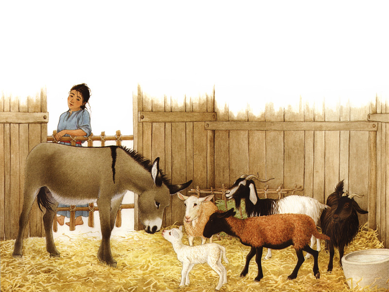 «Наверное, птицы рады, что возвращаются домой, ‒ подумал ослик. – Я так скучаю по Назарету. Но мне все равно повезло больше: ведь я остаюсь с младенцем, Марией и Иосифом! Все-таки я – их маленький ослик».