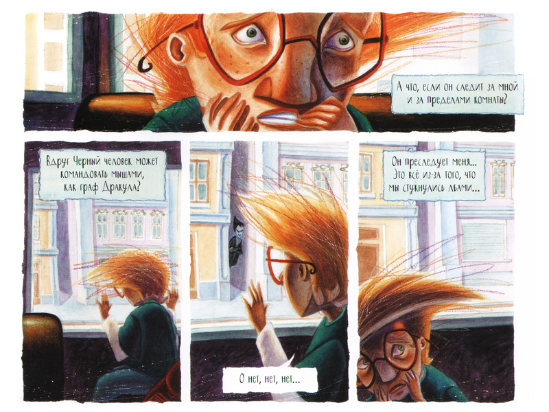 Такое графическое решение создает мистическую атмосферу и с первых страниц погружает тебя в совершенно другой мир, где живет… Черный человек!