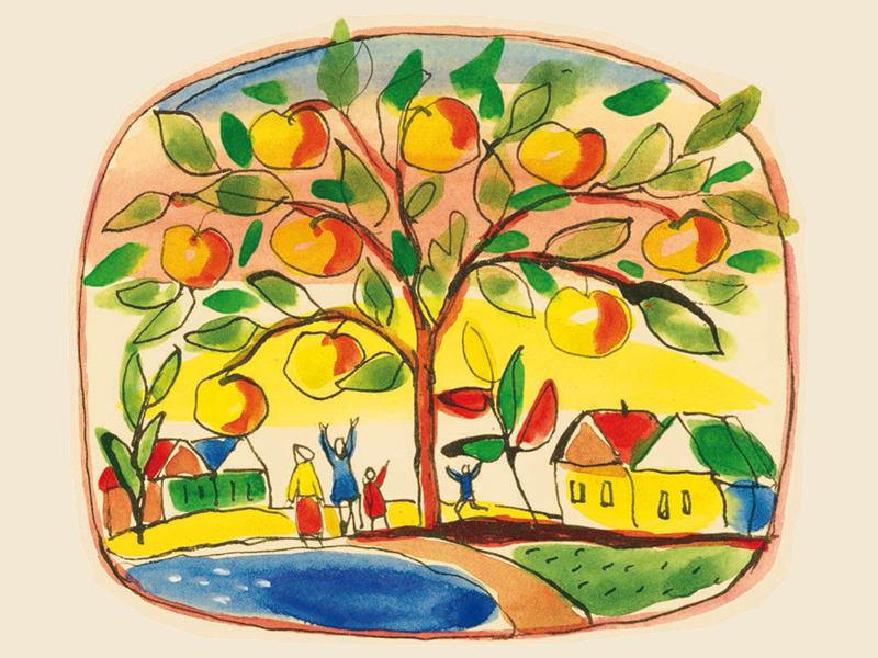 Книга называется «Дерево сказок», две сказки, в начале и в конце сборника, раскрывают идею названия. Сначала у странника-сказочника случайно выросла яблоня, которая плодоносит сказками. А в финале мы читаем, как садовник (как будто тот же самый сказочник) всю жизнь ухаживал за яблоней, не дававшей урожая. И только после его смерти на ней появились плоды с удивительными свойствами: «Кто был слеп, съев яблоко, становился зрячим, кто нем – златоустом, кто уродлив – красавцем, кто зол – добрым, кто глуп – умным, кто несчастлив – счастливым»…