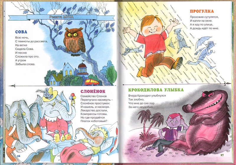 Помню, сколько сил и труда пришлось вложить Феликсу Шапиро в издание этой книги, – тем более я был обрадован, увидев ее продолжение: теперь уже в питерском издательстве «Речь», опубликовавшем «второй том» под названием «Двухэтажный человек». К тем трем десяткам поэтов, чьи стихи были включены в первое издание, добавлено еще три десятка имен – а это уже получается настоящая антология современной малышовой поэзии. И настоящая «поэтическая» книга Виктора Чижикова. И хотя каждый из поэтов представлен всего тремя-пятью, как правило, короткими стихами, картинка из этих пазлов складывается богатая, насыщенная цветом, а главное – звуком.