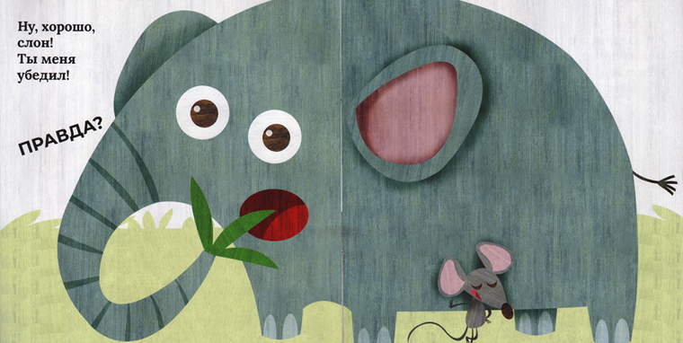 Когда-то давно, когда мои старшие дети были еще совсем маленькими, я очень верила в идею раннего развития. Наш дом был наполнен всевозможными самодельными карточками, картинками, всякими развивающими штучками. Это было здорово. И в самом деле в чем-то помогало дочке и сыну. Но когда появились младшие и я, по привычке, уверенно достала карточки с полки, оказалось – не работает. У них, что у одного, что у другого сыночка, какой-то совершенно иной способ набирать информацию об окружающем мире и перерабатывать ее. Все мои попытки подсунуть чуть подросшим младшим «научные» книжки для младенцев (с объяснениями и крупными картинками) ‒ о временах года и природных явлениях, о животных и о растениях ‒ не увенчивались успехом. Это Макар мог часами их разглядывать и в три с половиной года уже читал сам, а Мите были в этом возрасте интересны другие вещи. И Феде тоже. Но однажды Митя случайно увидел у меня на столе новые яркие детские книжки: на одной обложке чьи-то ноги в носочках торчат из-за облака, на другой – симпатичные слон с мышонком. «Слон и мышонок похожи как две капли воды» ‒ прочитал он название. «Да ну, разве так бывает? Что это за книжка такая у тебя странная, мам?» Федя, который всюду ходит за Митей, тут же схватил книгу и потребовал читать. А потом и ту, где ноги в облаке. Так они неожиданно обнаружили, что «научные» книжки могут быть совсем другими – очень интересными для них.