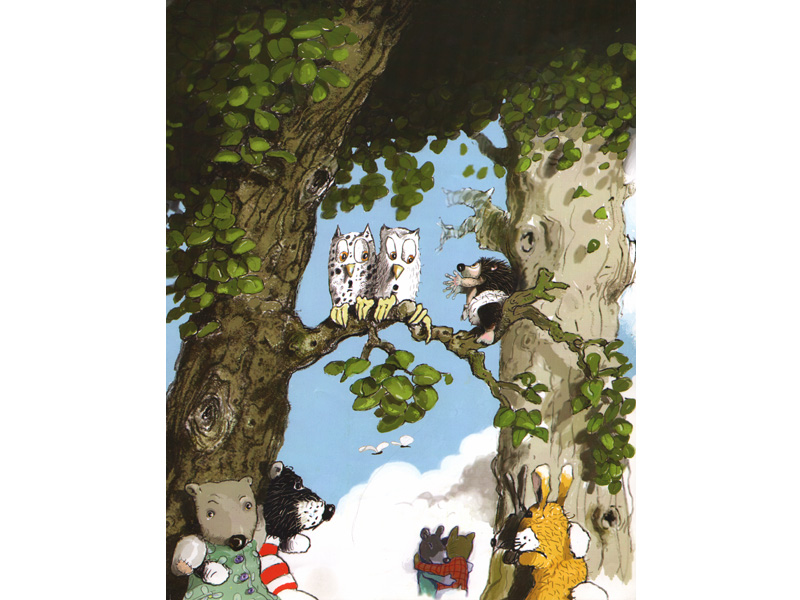Тем временем Элвис слышит чей-то голос: «О, неужели меня никто никогда не поцелует…» Это оказался крокодил Роки, «ужасно некрасивый и слишком уж зубастый». Сережа смело переворачивает страницу (он нисколько не боится ни чудищ, ни драконов, ни крокодилов): ежик Элвис «звонко чмокает Роки прямо в нос», а крокодил «крепко прижимает его к груди».