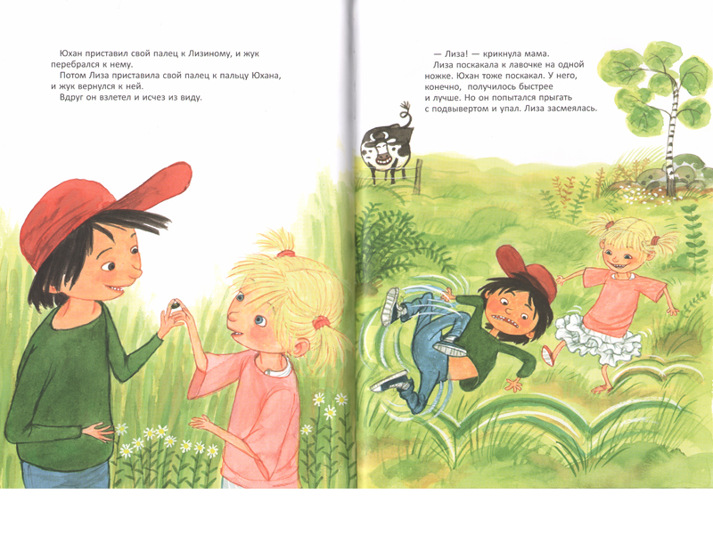 Даже ворона с ними кувыркается. А еще здесь есть полоски, которые показывают, как дети кувыркаются, а с ними и жуки, и лягушка. Весело!