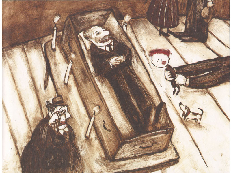Иногда я беру книгу в руки – и меня осеняет. Так получилось и с книгой «А дедушка в костюме?». Прекрасные иллюстрации Джеки Гляйха, потрясающий текст Амели Фрид. Я прочитал эту книгу – и сразу понял, как можно превратить ее в спектакль, как этот текст поставить. Эта история нарративная, рассказываемая, и я точно так же пытаюсь ее подать на сцене. Здесь непременно нужно создать дистанцию между зрителем и сценическим действом – то есть рассказывать отстраненно. А если бы я начал разыгрывать сцену смерти как в ролевом театре, это выглядело бы, с одной стороны, неправдоподобно, а с другой – очень страшно.
