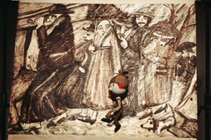 – Обычно в спектаклях выдумка, а здесь чисто жизненная ситуация рассказана. Это необычно... Здесь нет костюмов. Здесь вместо декораций картины. И еще эта кукла. Она вроде бы живой человек, эта кукла.