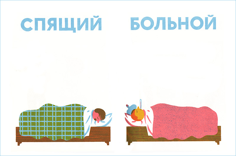 Эта пародийная стилизация невероятно динамична. Все персонажи «захвачены» художником в момент какого-нибудь действия. Даже если они изображены лежащими в кроватях, мы легко ответим на вопрос, что они делают. «Спящий» что делает? Храпит! Свидетельство тому – его открытый рот «Больной» что делает? Мерит температуру: у него во рту термометр.