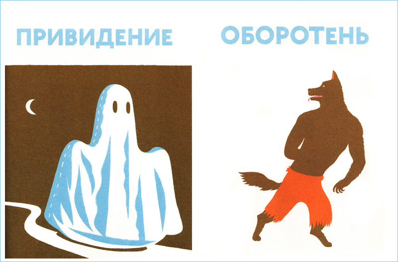 Но только тебе покажется, что ты все понял – понял, «чему нас учит эта книжка», – как буквально на следующем развороте наталкиваешься на нечто, явно вываливающееся из концепции, – на какое-нибудь привидение, оборотня, чучело… Они-то как сюда затесались? Это уж точно не «люди»?