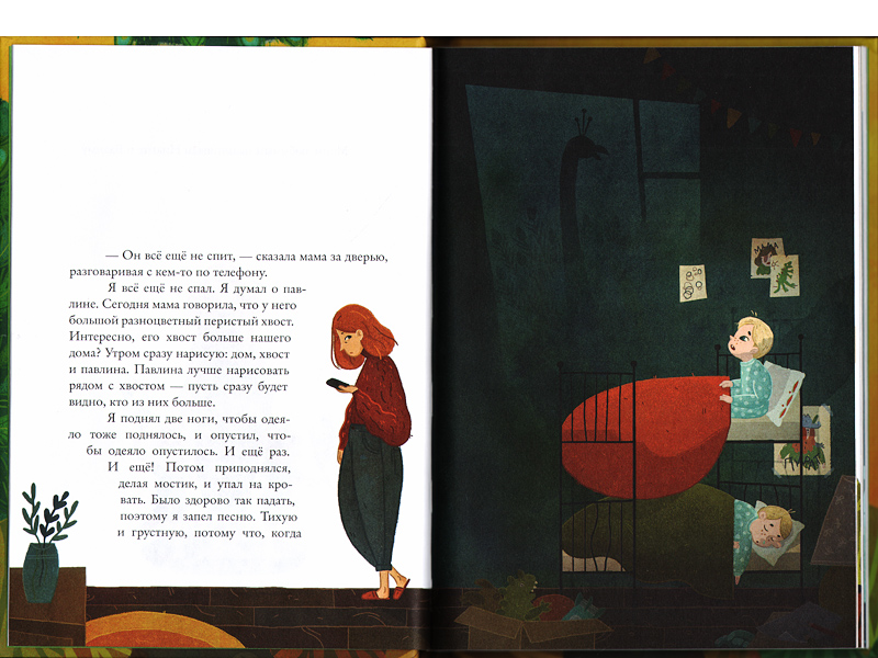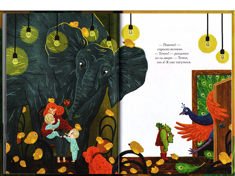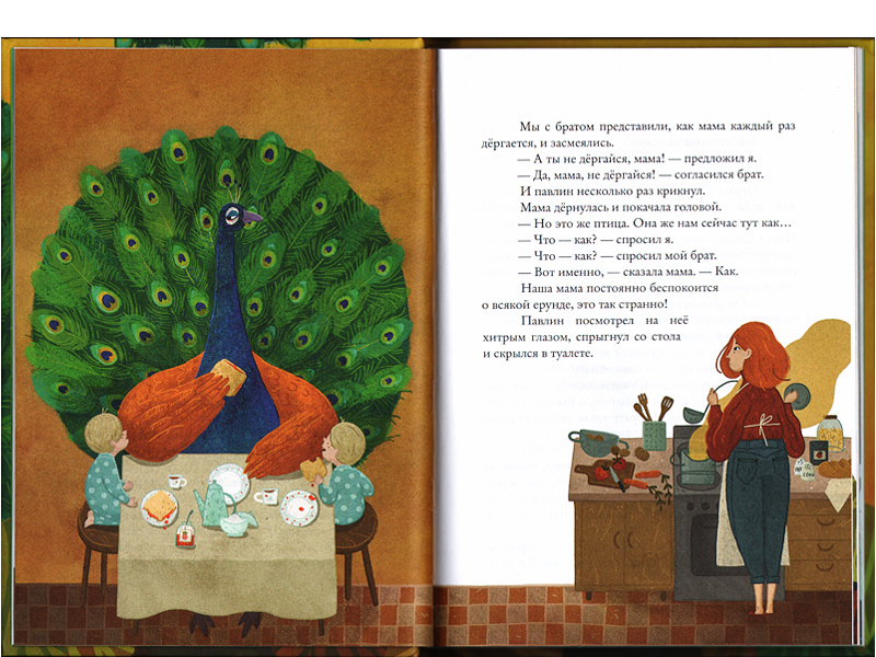 Об этой книге я знала давно. Еще до того, как ее издали. Потому что мы с Наташей хорошие подруги и она мне предлагала прочитать историю про павлина сразу, как она ее написала. А я не согласилась, потому что мне хотелось читать «настоящую» книгу, такую, чтобы с картинками. И я знала, что она у Наташи будет. И не простая, а волшебная! Почему? Да потому что в ней происходят настоящие чудеса, вплетенные в обычные повседневные заботы мамы и ее сыновей.