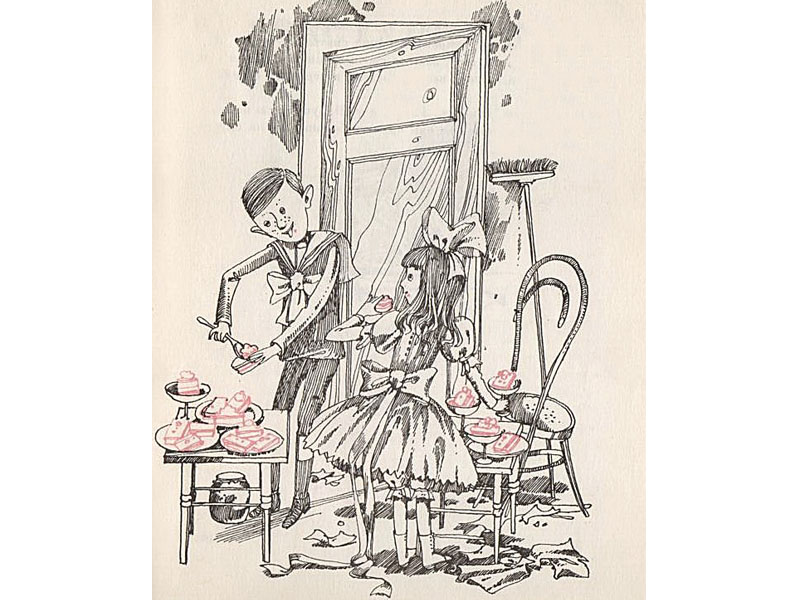 «Когда мама Гарри увидала, что осталось в кладовой после всех ее хлопот, она отправила Гарри спать. Не знаю уж, как спал Гарри, а у Шалуньи всю ночь болел живот, и с того дня она никогда больше не ела пирожных с кремом».