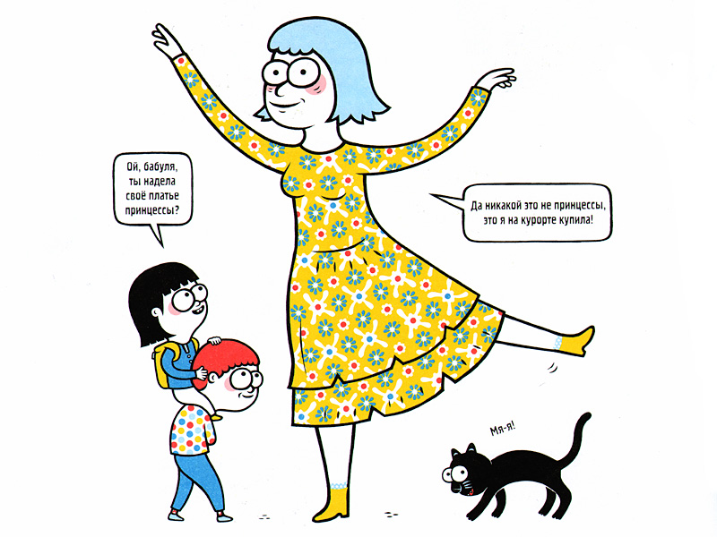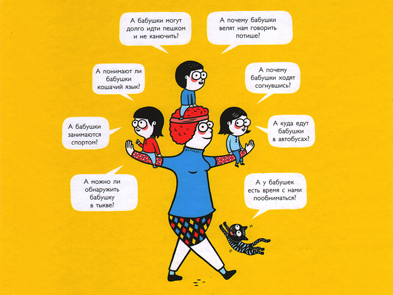 Как хорошо, что моему сыну приятно и хорошо со своей бабушкой! Читая книгу и рассматривая яркие картинки, я убеждалась в этом все больше и больше. Матвей узнавал прическу бабушки Юли среди других «бабушкинских» причесок, вспоминал субботние утра, которые они проводили вместе, лежа под одеялом и завтракая в постели. Соглашался, что бабушки, возможно, единственные, кто так искренне радуется поздравительным открыткам. Смеялся, читая про то, как бабушки постоянно ездят на автобусах. «Но никто не знает, куда они едут…»