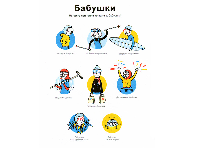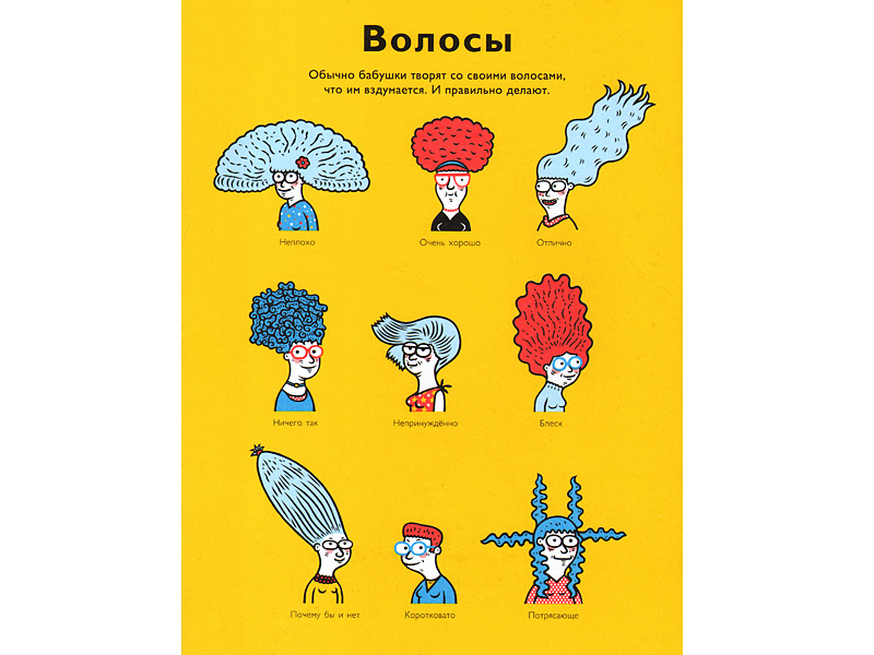 Книга Эрика Вейе больше всего напоминает энциклопедию. Внутри – разные виды бабушек и объяснение их поведения.