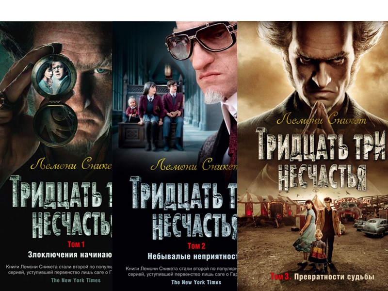 Серию детских книг «33 несчастья» написал американский писатель Дэниел Хэндлер под псевдонимом Лемони Сникет. Эта серия состоит из тринадцати не особо длинных книг, отличающихся от прочей детской литературы своим минорным повествованием и чёрным юмором, который порой непонятен юным читателям.