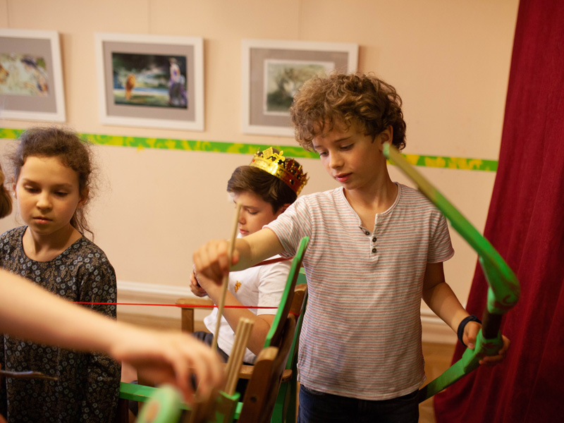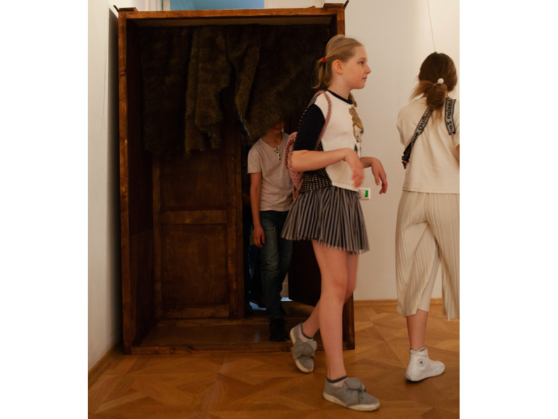 Выставка достаточно лаконична, в залах много свободного пространства, но у детей нет ощущения пустоты. Они достраивают мир в своем воображении и сразу начинают в него играть. За две недели летней программы они обжились в Нарнии, у каждого появился персонаж, который им близок. На театральном занятии они взяли себе роли, но даже вне игры продолжают общаться друг с другом как нарнийцы.