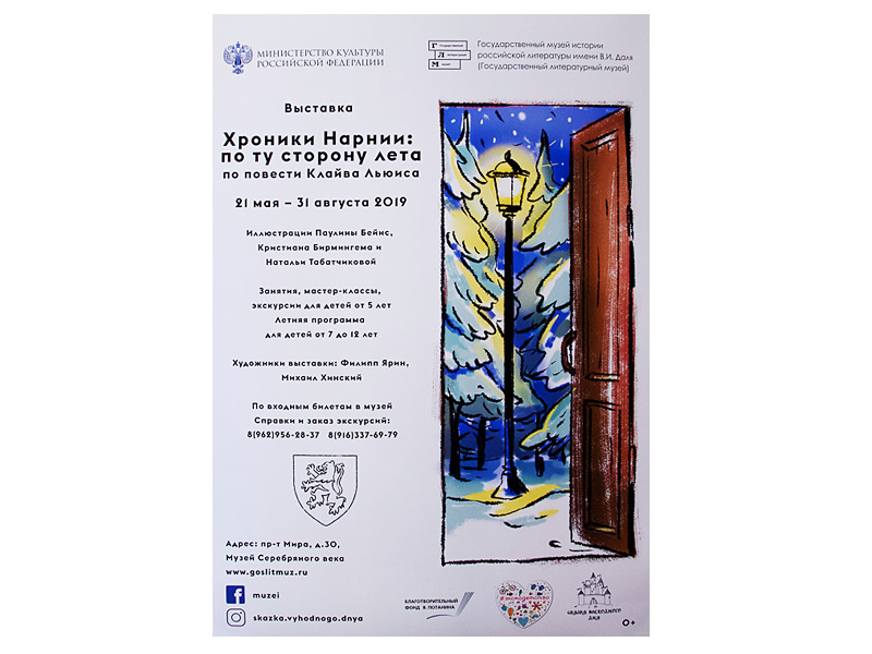 Выставка сопровождается иллюстрациями трех художников: первого иллюстратора «Хроник Нарнии» Паулины Бейнс, современного английского художника Кристиана Бирмингема и современной российской художницы Натальи Табатчиковой. Интересно посмотреть, как разные художники изобразили этот сказочный мир. С работами Паулины Бейнс и Кристиана Бирмингема нам помогло издательство «Эксмо» – у них есть право на показ. Иллюстрации Натальи Табатчиковой не изданы, мы с ней связались, и она разрешила нам их выставить.