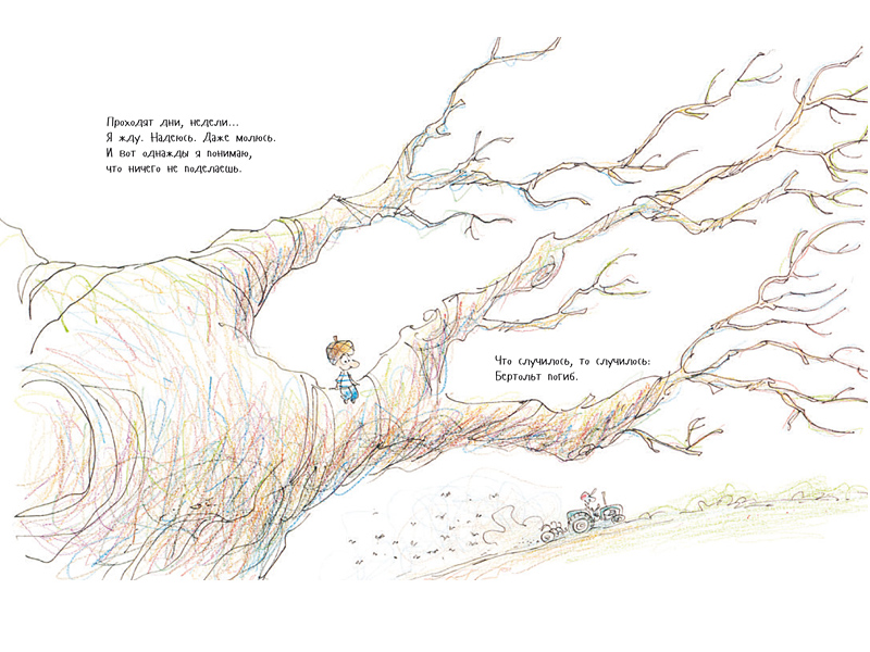 Самое трудное для мальчика – это не принять смерть Бертольта, а найти выход для своих эмоций – ведь у него нет больше друга. Когда умирает птица – вершишь похоронный обряд. Что делать, когда умирает дерево?..