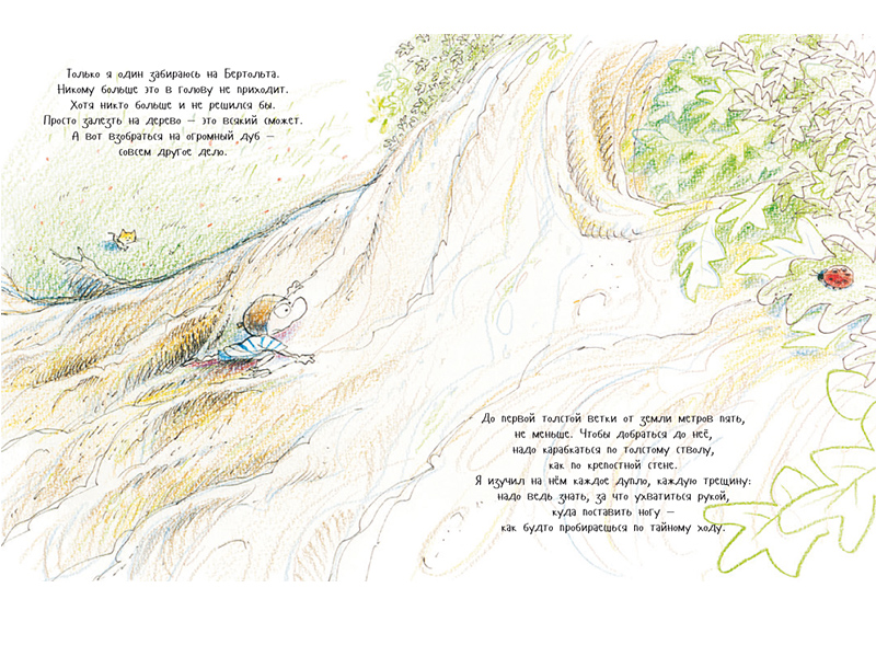 Мой старший сын, десятилетний Фёдор, читает вслух младшему, семилетнему Макару. Недавно они читали книжку-картинку французского автора Жака Гольдстина «Мой друг Бертольт». Это история о мальчике и его дереве. В книге у мальчика нет имени. А вот дерево – огромный старый дуб – зовут Бертольт. История об одиночестве и дружбе, о смерти и весне. Но для нас ‒ опять о смелости быть собой (кажется, это наша любимая тема). У сыновей, за которыми я наблюдала со стороны, получились интересные разговоры вокруг книги.