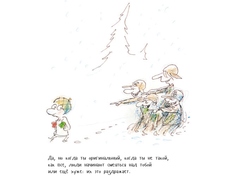 Текст начинается с того, что мальчик потерял перчатку. Опять. И надел непарные, разноцветные ‒ так даже оригинальнее. Проблема в том, что люди над «оригинальностью» смеются. Или она их раздражает.