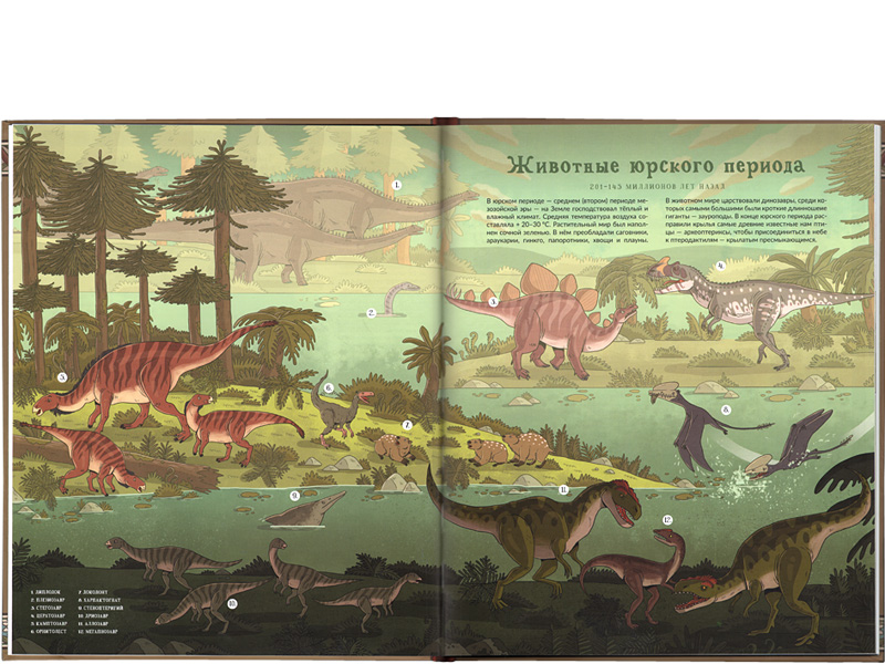 Материал в книге структурирован хронологически. Читая ее последовательно, я двигалась от момента возникновения первых земноводных на Земле до наших дней. Для меня стало неприятным открытием, что в 2019 году животные продолжают вымирать, а человек ‒ бездействовать. Североамериканская пума, занзибарский леопард, мозаичнохвостая крыса – животные, которые были утрачены совсем недавно. На последней странице нарисованы и описаны те, с кем скоро придется попрощаться, если человек не осознает свою ответственность перед ними.