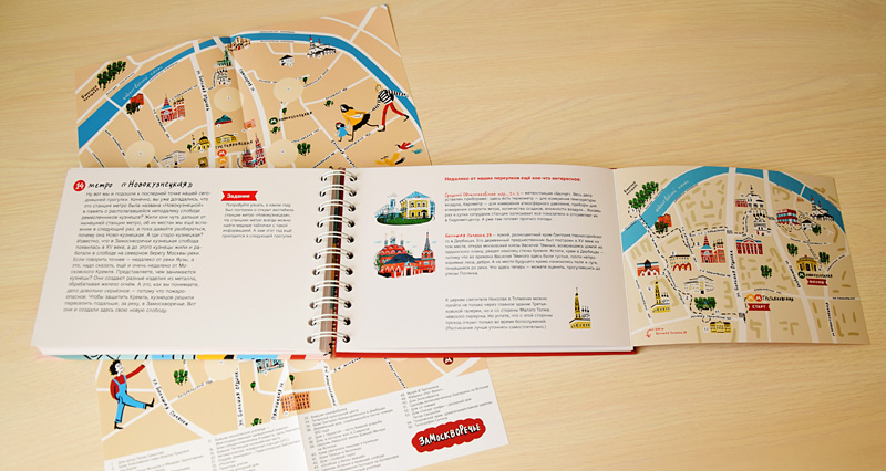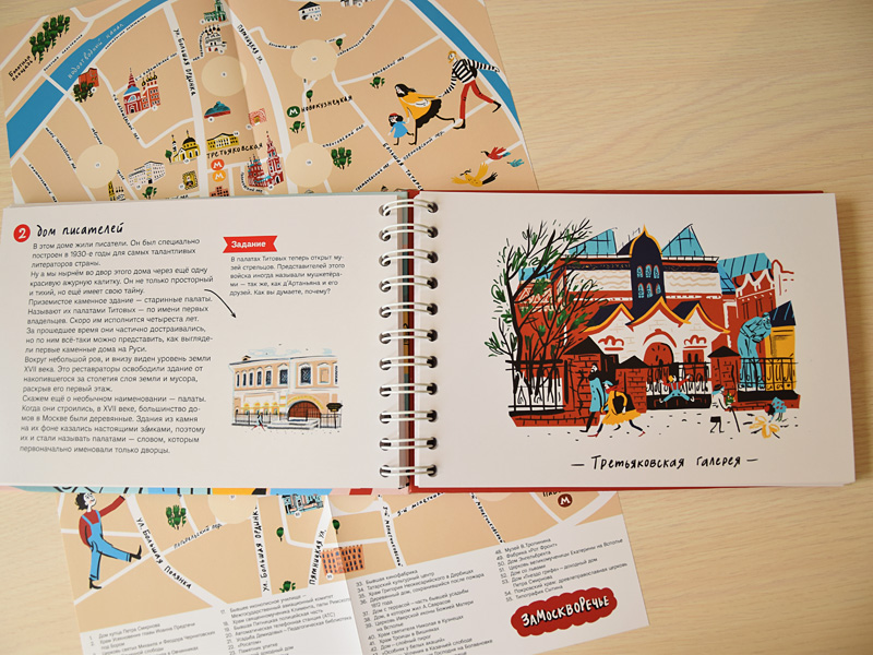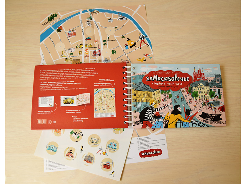 Всевозможными квестами и интерактивными экскурсиями сейчас уже никого серьезно не удивишь. Но книга-квест для семейных путешествий по Замоскворечью, выпущенная издательством «Никея», предлагает маленьким читателям и их родителям не только нестандартные прогулки по старинным московским кварталам между улицами Большая Ордынка, Новокузнецкая и Пятницкая. Эта книга разноуровневая, с ней будет интересно бродить по городу и старшим дошкольникам, и младшим подросткам. Это особенно важно, если гулять собирается компания детей нескольких возрастов. Специально для самых маленьких у книги есть герои – папа Игорь, мама Маша и их дети, Вася и Аглая, которые путешествуют по всем этим маршрутам. На страницах книги с ними происходят забавные ситуации, которые уставшие от прогулки малыши будут с удовольствием рассматривать. Для них же в конце книги есть лист с наклейками-рисунками встреченных на маршруте архитектурных сооружений, которыми можно украсить большую карту Замоскворечья. Есть и еще один вариант активности для не читающих пока маленьких путешественников – парные картинки для игры в memory. Отличная, по-моему, идея для очередной остановки в пути. Но, конечно, прежде всего это книга-путеводитель. Дети постарше, начиная лет с восьми, с удовольствием будут выполнять всевозможные задания, предложенные авторами.
