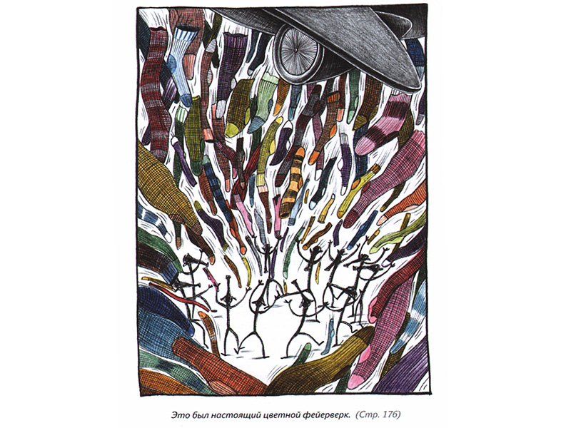 И хотя основной сюжет вертелся вокруг Носкоеда Хихиша и его друзей, которые отправились в Танзанию спасать его родителей, главной темой наших с сыном дискуссий все равно были носки. Опасные приключения? Тайная секта? Носочный магнат? Покровитель Носкоедов? Злобный Носкоед Дедерон Ножик и его банда? Это оказалось не самым главным в книге. Главными стали носки. О которых, кстати, автор почти не упоминает. Но при этом их «аромат» витает на страницах книги так, что обойти тему стороной просто невозможно.