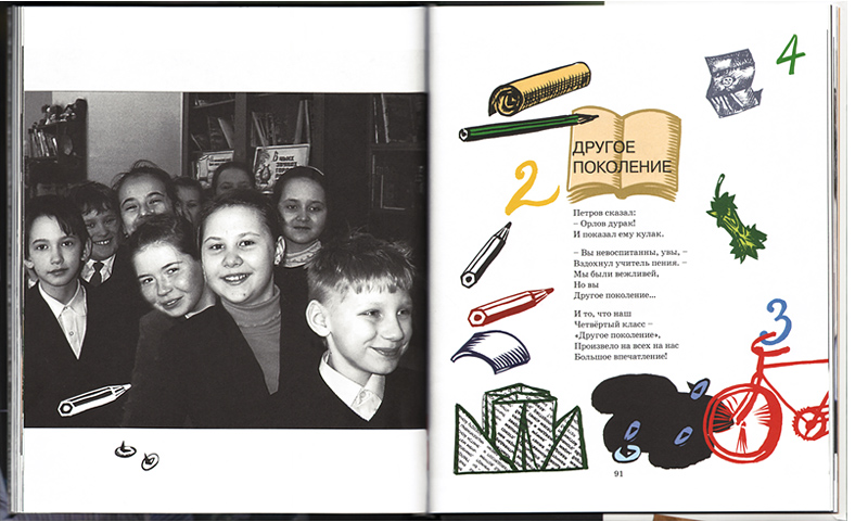 Стихи, вошедшие в книгу «Сто бумажек от ирисок», публиковались раньше в других сборниках и в журналах, но звучат они по-новому – и потому, что иначе собраны, и из-за взаимодействия с фотопортретами детей. Еще одно измерение добавляет небольшой самостоятельный текст – список названий фоторабот: возвращаешься к фотографии рядом со стихами «Вот так встреча!», а фотоснимок, оказывается, называется «А я ему как дал!». Или читаешь стихотворение «Застрял» и уже знаешь, что фотография рядом названа «Пятерка за диктант».
