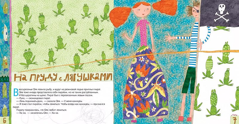 «В воскресенье Оля ловила рыбу, и вдруг на резиновой лодке приплыл пират.