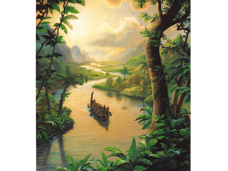 – Сразу было понятно, что в один том роман не уместится. С другой стороны, у Жюля Верна уже в структуре романа есть подсказка – он разбит на три части. И эти части довольно разные – и по содержанию, и по действию. Поэтому мы решили делать три тома. У Жюля Верна много описаний, зачастую избыточных, часть их художник может просто изобразить. Важно было сохранить действие, диалоги, которые отвечают сюжету, помогают его двигать и характеризуют персонажей. И так как сюжет покоится на двух китах – географии и истории, то я решил, что с географией можно обойтись немножко пожестче. Все-таки сейчас люди гораздо лучше ориентируются в ней, и мне казалось, что интереснее оставить исторические описания – про народ маори, про покорение этих земель, про то, как развивалась колонизация и так далее.