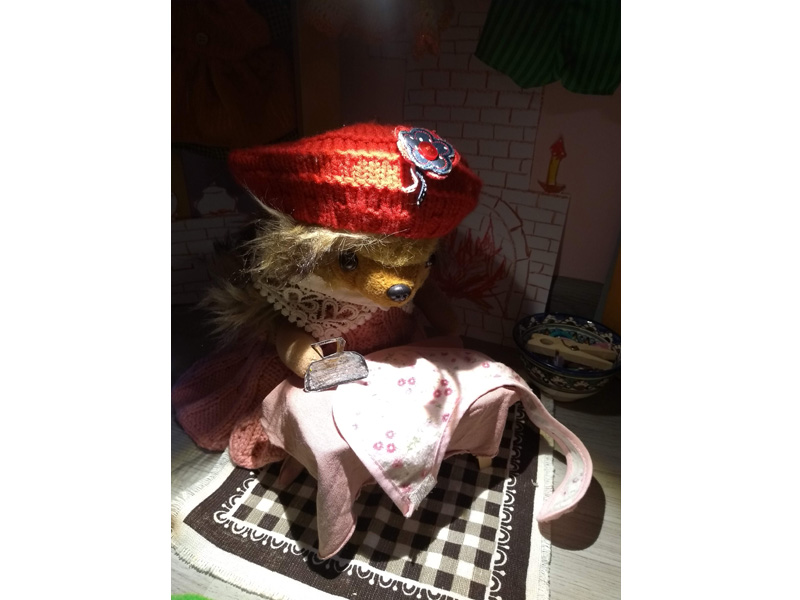 Ухти-Тухти, ежиха в платье и чепчике (шитая игрушка)