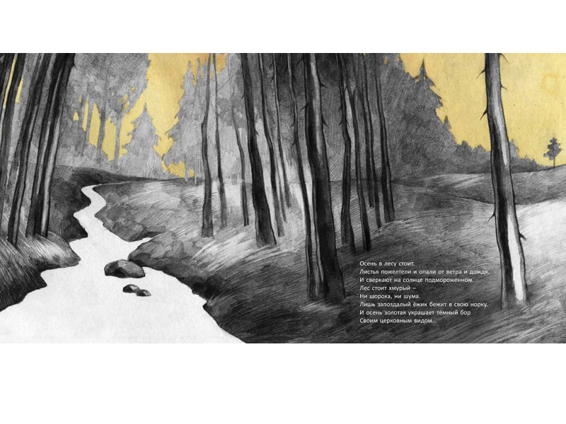 ‒ Я всегда хотела заниматься именно книжной иллюстрацией, и университет меня не переубедил. На Западе профессия иллюстратора воспринимается значительно шире, чем работа с книгами. Нам показывали много всего, что мы можем делать с нашими навыками и нашими идеями. Кроме того, у нас был курс, смешанный с анимацией. У меня в дипломе написано «иллюстратор-аниматор». Но все это не выбило из меня желания рисовать именно книжки. Когда я закончила учиться, я вернулась в Россию и начала рассылать портфолио в разные издательства, которые мне нравились. Я это делала довольно наивно, полагая, что с адресов, указанных на сайте издательств, и начинающихся с info, мне сразу же ответят. Конечно, этого не происходило. Кроме одного раза. Я отправила письмо в «Поляндрию», и как раз в этот момент Дарина Якунина, создательница издательства, проверяла почту и искала иллюстратора для своих задумок. Она предложила мне сделать книжку. Так родилась моя первая книжка – «Рыжие леса». Постепенно я начала все больше вращаться в индустрии, стали поступать другие заказы.
