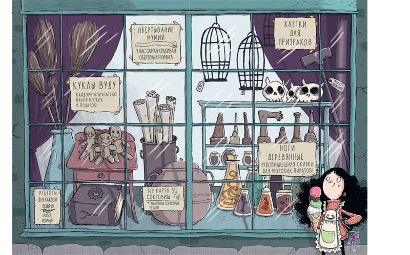 «Ноги деревянные. Чудовищная скидка для морских пиратов!» «Куклы вуду. Каждому покупателю набор иголок в подарок!» «Рецепты для каждой ведьмы. Новое издание».