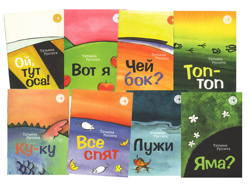 Эти рассказы Татьяны Русситы изначально были частью той же серии, что и сборник «Чей бок?», речь о котором идет ниже, и выходили как наборы отдельных маленьких книжечек. Теперь их переиздали двумя «томами» – наверняка такой формат понравится тем, в чьих семьях вещи имеют свойство теряться, а значит, одна из книжечек набора может пропасть бесследно. Тем не менее, суть сохранилась: это совсем маленькие рассказики, напечатанные крупными буквами на белом фоне и сопровождающиеся дублирующими смысл текста иллюстрациями.