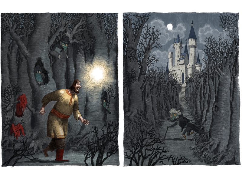 ‒ Да, но исторические романы, к сожалению, редко иллюстрируют – если это не детско-юношеская литература. В советское-то время можно было и «Войну и мир» с иллюстрациями встретить… Но я эту свою страсть к историческому использую и при иллюстрировании сказок. Я сразу думаю о том, в каком историческом времени это могло бы происходить, от чего бы мне оттолкнуться. Взять, например, Гофмана. У меня в памяти сразу всплывают гравюры его современников, их колорит, их изящество. Я сразу вспоминаю художника Каспара Фридриха... Или однажды мне нужно было иллюстрировать сказки про гномов и великанов. Я рисовал Европу XVI века, вдохновлялся Брейгелем и Босхом.