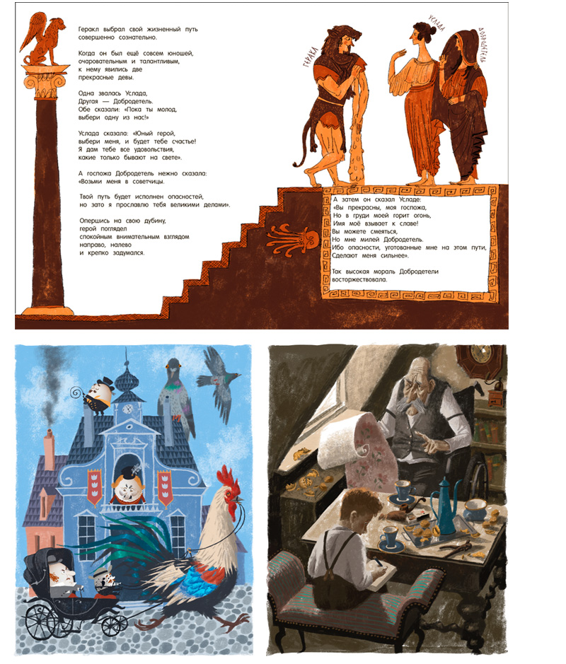 ‒ Понятно, что-то мне больше нравится, что-то – меньше. Например, я очень люблю «Историю принца Реми, лошадки по имени Реми и принцессы Мирей» Пьера Грипари. Для меня было огромным удовольствием иллюстрировать эту книгу. Там есть все, что любят мальчишки – мундиры, драконы, фехтование, чудеса… И все это так остроумно закольцовано, что напоминает философскую притчу. И я прямо развернулся – погрузился туда с головой, и даже попросил увеличить количество страниц в книге, потому что все то, что мне хотелось нарисовать, не вмещалось в макет издательства.