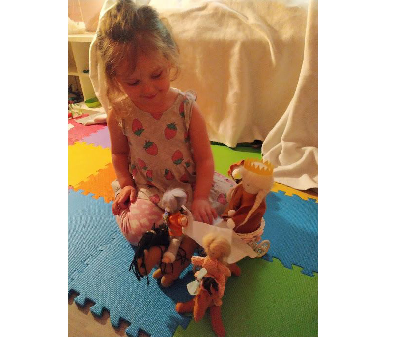 Остальные куколки (родители и королева) уже были в нашем арсенале, я делала их раньше по технологии вальдорфских кукол.