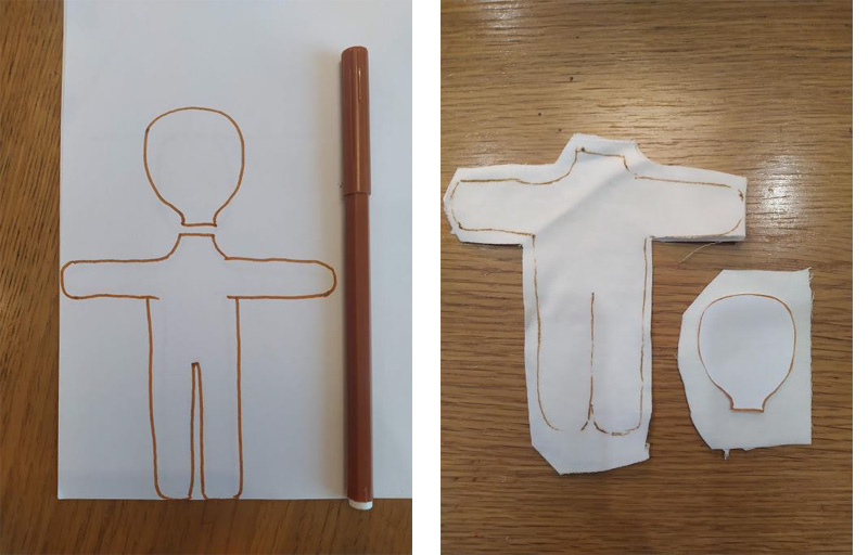 Чтобы сделать каждую из куколок, я сначала нарисовала условную фигуру, которую хотела получить в итоге, с отделенной от тела головой.