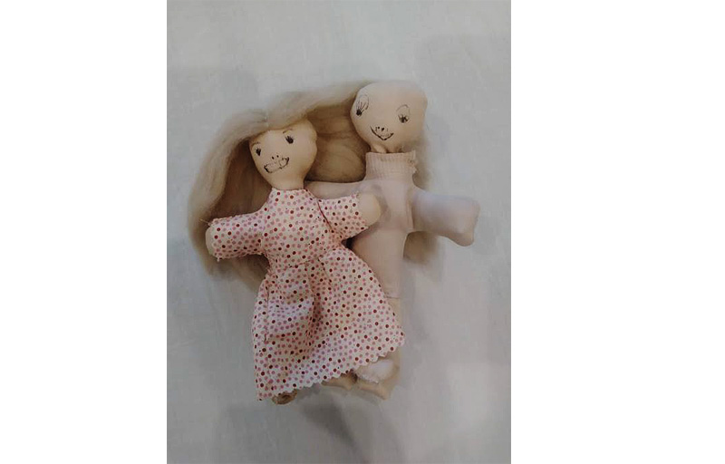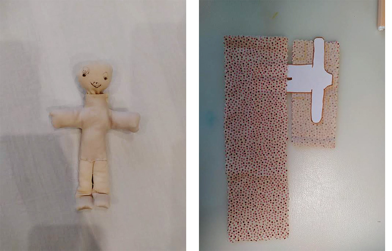 Ребенок помогал готовить кукол. Аня замачивала ткань в чае, выбирала ткани для одежды, цвет волос и сама нарисовала мальчику и девочке лица, которые получились очень харизматичные.