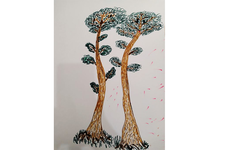 Сосны Зацепитучу и Подопринебо я нарисовала на куске плотного ватмана.