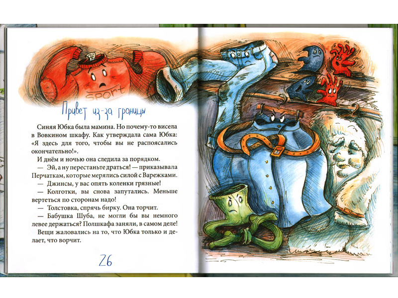 И то ли от отчаяния, то ли из вредности стала записывать коротенькие истории о жизни одежды в шкафу. Когда была написана последняя сказка, я даже всплакнула. Я успела привязаться к шкафу, к этому деревянному старику, у которого скрипят полочки, который каждую ночь чувствует внутри себя копошение колготок и маек...