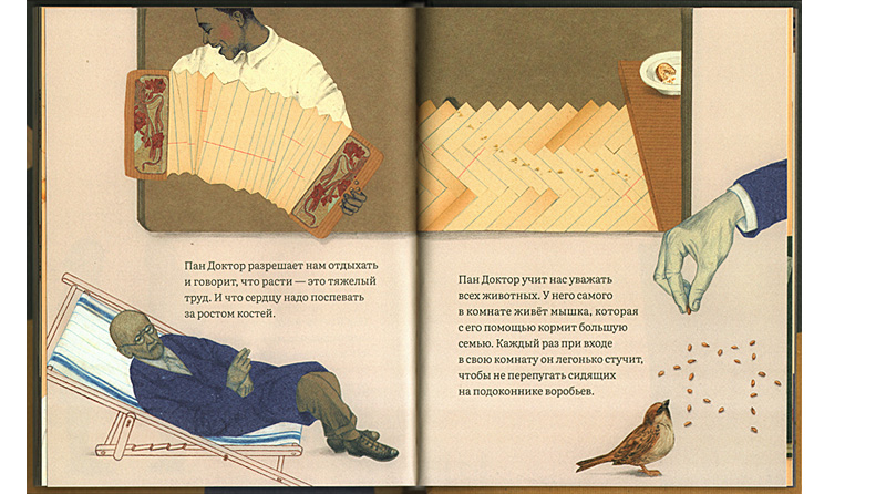– А нам очень важно, чтобы наши книги доходили до детей… Знаете, тут была какая история… В «Дневнике Блюмки» есть разворот, где уставший Корчак лежит, смотрит в потолок, а в руке у него сигарета. И вдруг оказалось, что, согласно законодательству, мы не можем поставить на этой книге возрастной адрес «6+» – из-за сигареты. Только «18+»! Мы написали Ивоне Хмелевской. Она ужасно расстроилась: это же детская книжка! Лучше пусть будет без сигареты. Я стерла сигарету. Отправила Ивоне посмотреть, что получилось. Ивона в ответ пишет: так даже загадочней смотрится…